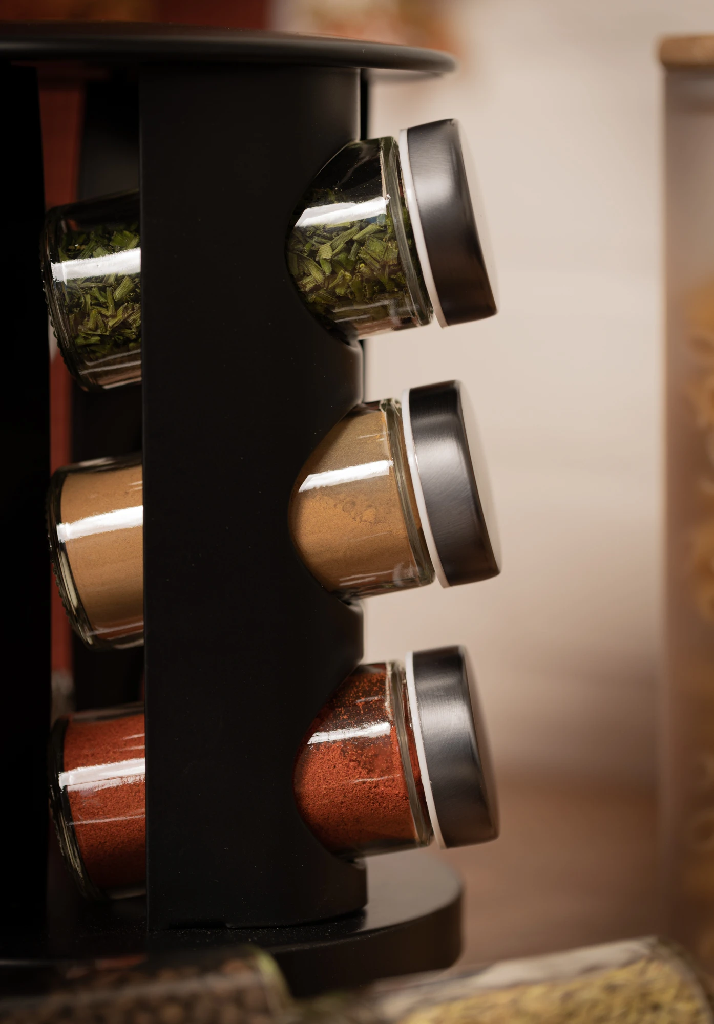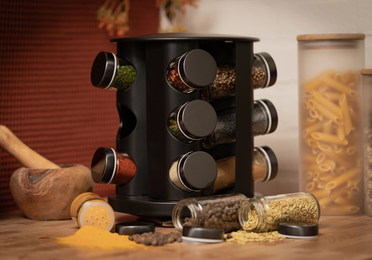 Wil je meer ruimte in de keuken creëren en de keuken organiseren? Dan is de Blackwell Kruidenrek Zwart 12-Delig ideaal voor jou. Gebruik dit kruidenrek om eenvoudig je specerijen en kruiden in op te bergen, dit ziet er niet alleen stijlvol uit in jouw keuken, maar is ook ruimte besparend. Het Blackwell Kruidenrek Zwart 12-Delig biedt ruimte voor 12 verschillende kruiden. Je kan alle kruiden en specerijen gemakkelijk pakken doordat het kruidenrek draaibaar is.
