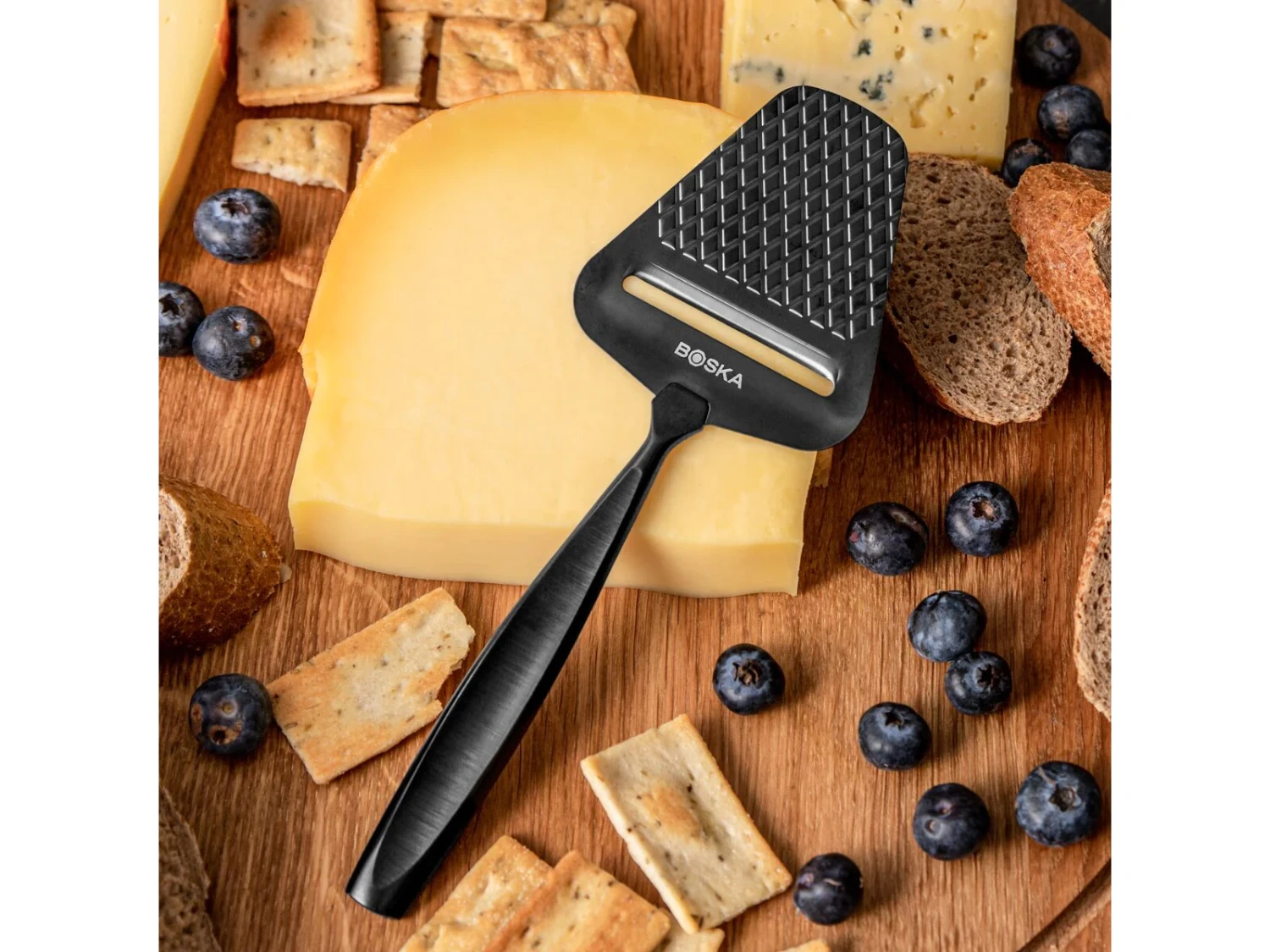 Naast alle tradionele kaasschaven, komt Boska nu ook met de mat zwarte editie. Deze Boska kaasschaaf Monaco is samengevoegd uit meer dan 120 jaar ervaring en heeft een industriΓ«le look. Door het gewafelde oppervlak met non-stick coating schaaf je heel makkelijk smaakvolle plakken, zonder dat de kaas blijft kleven. De schaaf is geschikt voor mooie, dunne plakken half harde en harde kaas. Denk daarbij bijvoorbeeld aan echt Hollandse Gouda. Na gebruik kan de kaasschaaf in de vaatwasser worden gereinigd. De kaasschaaf wordt bovendien geleverd in een mooie geschenkverpakking.
