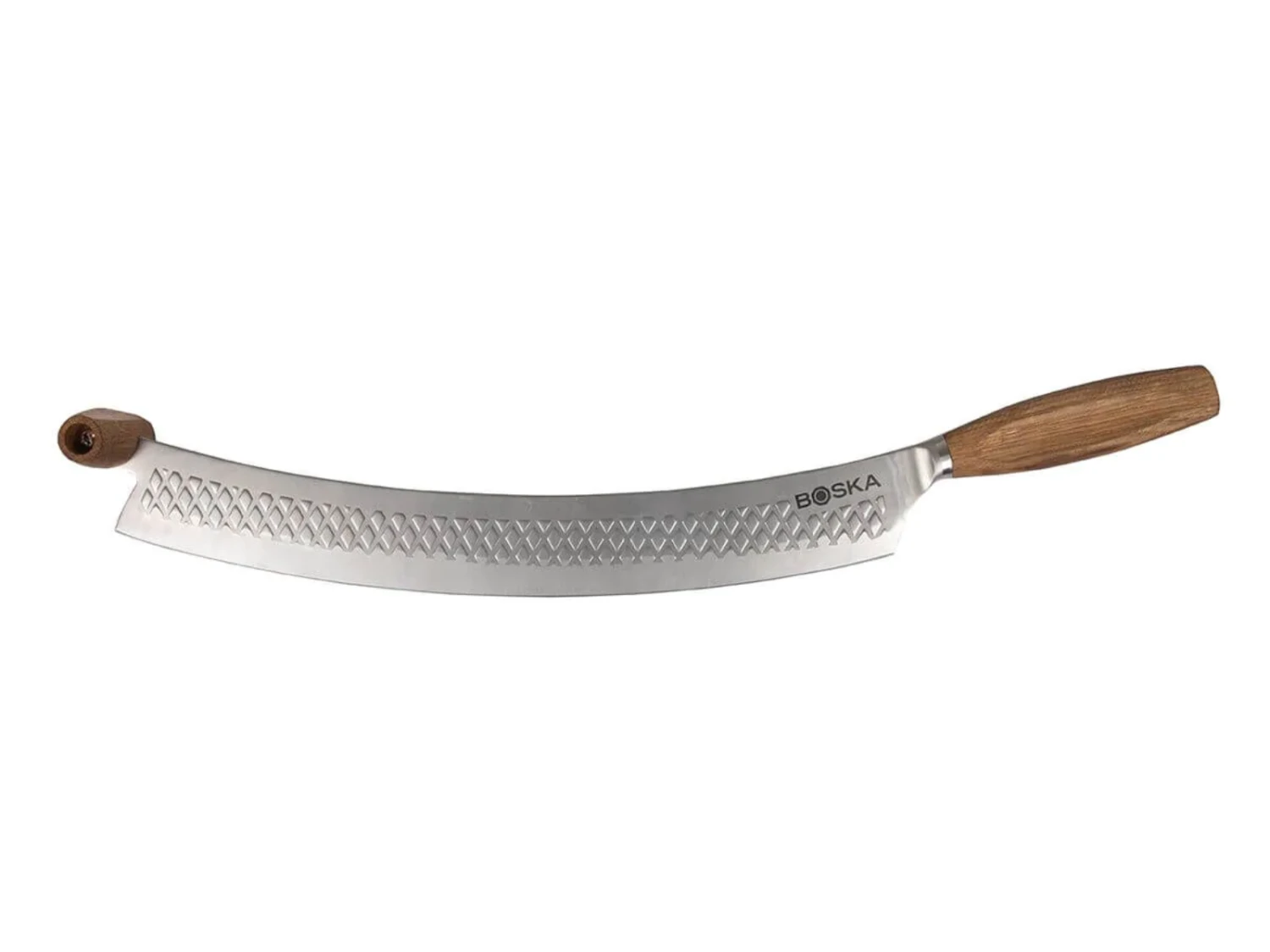Met het Boska pizza & kaasmes Oslo+ krijg je elke pizza klein. In tegenstelling tot de gewone pizzasnijders hak je met dit mes in één keer jouw pizza door midden. Door de non-stick laag blijven er ook geen resten plakken en gebruik je hem zo voor de volgende pizza. De twee eikenhouten handvaten zorgen voor grip en veiligheid.