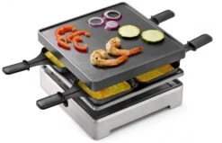 Gourmetten draait om een samenkomst van mensen in combinatie met lekkere gerechtjes! Het Espressions gourmetstel Square 21 x 13 cm is gemaakt van RVS. Het gourmetstel beschikt over een afneembare bakplaat met anti-aanbaklaag. Hierdoor is de bakplaat gemakkelijk schoon te maken. Het gourmetstel is geschikt voor 4 personen en wordt geleverd met 4 pannetjes en 4 spatels. Met deze pannetjes kun je ‘racletten’: van bovenaf verwarmen. Is je gezelschap groter? Dankzij het meegeleverde koppelsnoer kun je twee gourmetstellen aan elkaar koppelen!