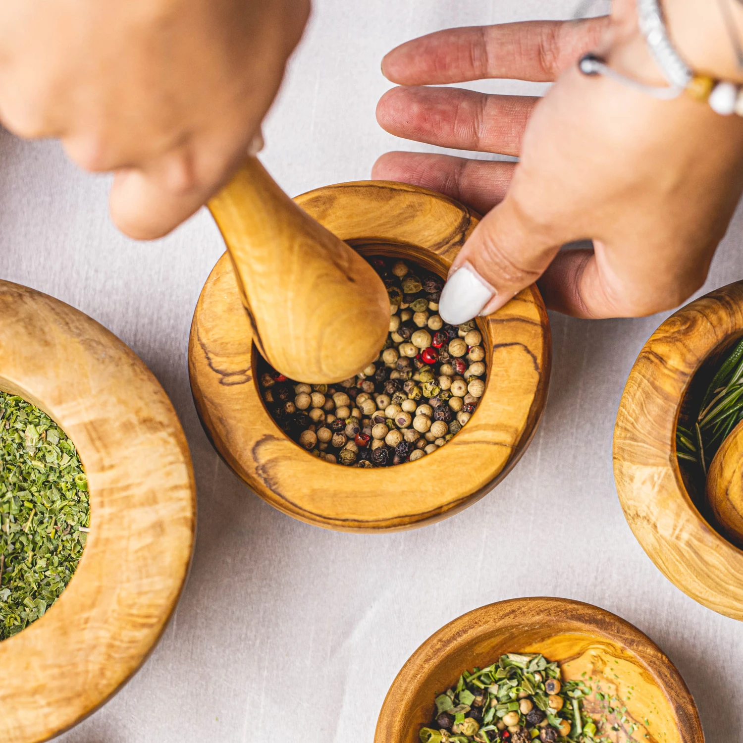 Ben je fan van houten accessoires voor de keuken en gebruik je vaak fijngemalen kruiden? Met deze vijzel Tunea maal je eenvoudig je kruiden fijn. Fijne kruiden zijn heerlijk voor verder gebruik in sauzen, soepen en marinades. Het olijfhout is zeer sterk en pakt prettig beet. De vijzel heeft een ronde afwerking, is 11 cm breed en wordt geleverd met beker + stamper.