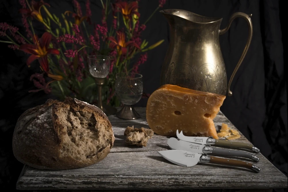 Met deze kaasmessenset van Laguiole Style de Vie presenteert u uw kaasplankje in stijl. De set bestaat uit drie kaasmessen voor verschillende kaassoorten. De kaasmessenset wordt geleverd in een houten tray en alle messen zijn voorzien van een glad lemmet van 1.2 mm. Daarnaast zijn de messen vaatwasbestendig.