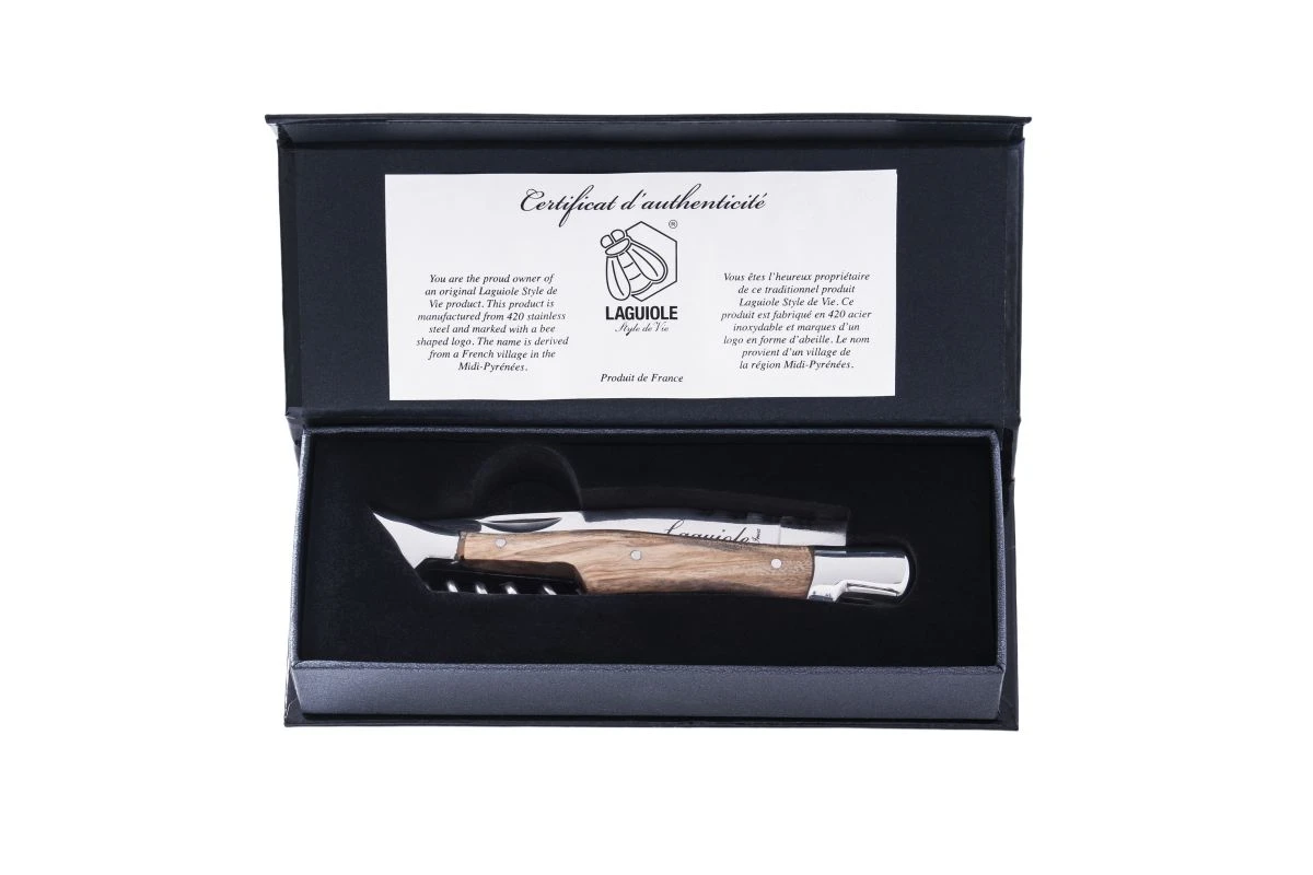 Een zakmes is onmisbaar, zeker dit multifunctionele exemplaar van Style de Vie! Naast het scherpe lemmet heeft dit stijlvolle mes namelijk ook een handige kurkentrekker. Het ergonomische heft zorgt voor een optimale greep en dat maakt dit zakmes nog leuker om te hebben. Het Laguiole zakmes wordt geleverd in een luxe giftbox inclusief echtheidscertificaat.