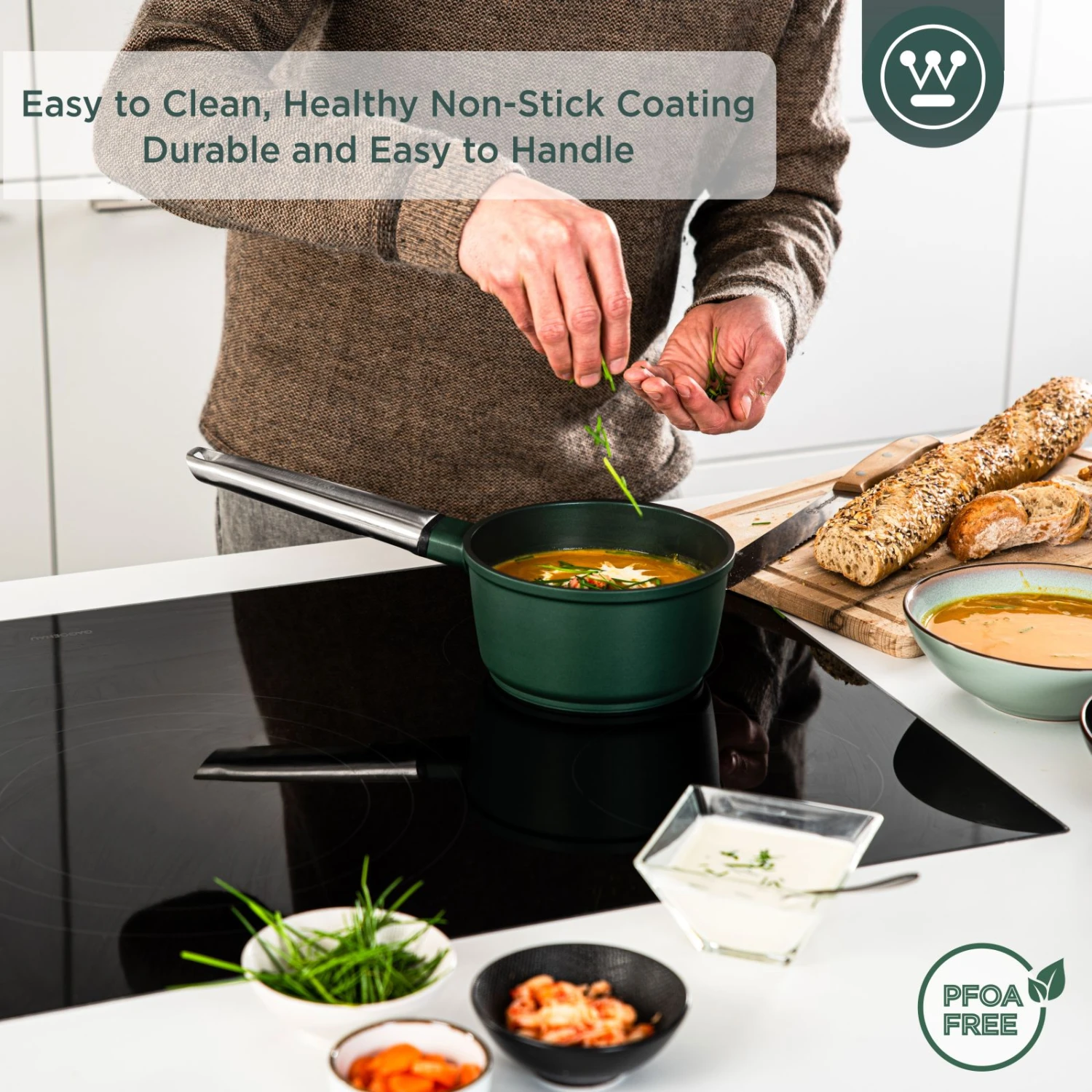 Koken en bakken moet niet alleen leuk en smakelijk zijn, het moet ook veilig gebeuren. De pannen van Westinghouse zijn van hoogwaardige kwaliteit. Deze pannen van de Westinghouse Performance collectie zijn lichtgewicht, hebben een uitstekende warmtegeleiding, bevatten een antiaanbaklaag die PFOA- en PTFE-vrij is en zijn makkelijk schoon te maken in de vaatwasser.