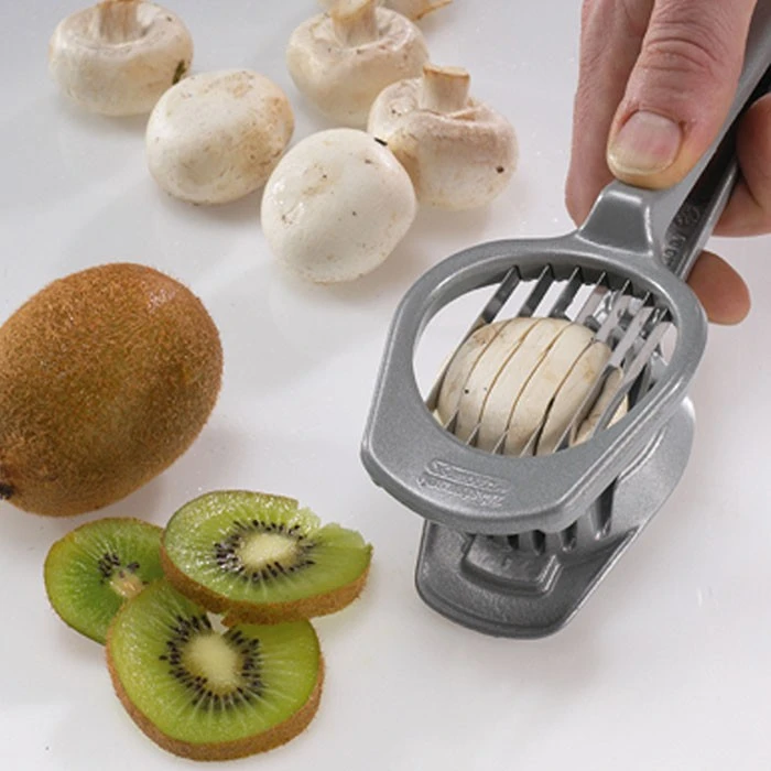 Met de champignonsnijder van Westmark is het snijden van champignons een fluitje van een cent. De snijder is voorzien van zeven scherpe messen, waardoor je in één keer 7 gelijke plakjes krijgt. Naast champignons kun je er ook aardbeien, eieren en kiwi mee snijden. Vergeet na gebruik niet om de snijder schoon te maken met warm water en wat afwasmiddel.