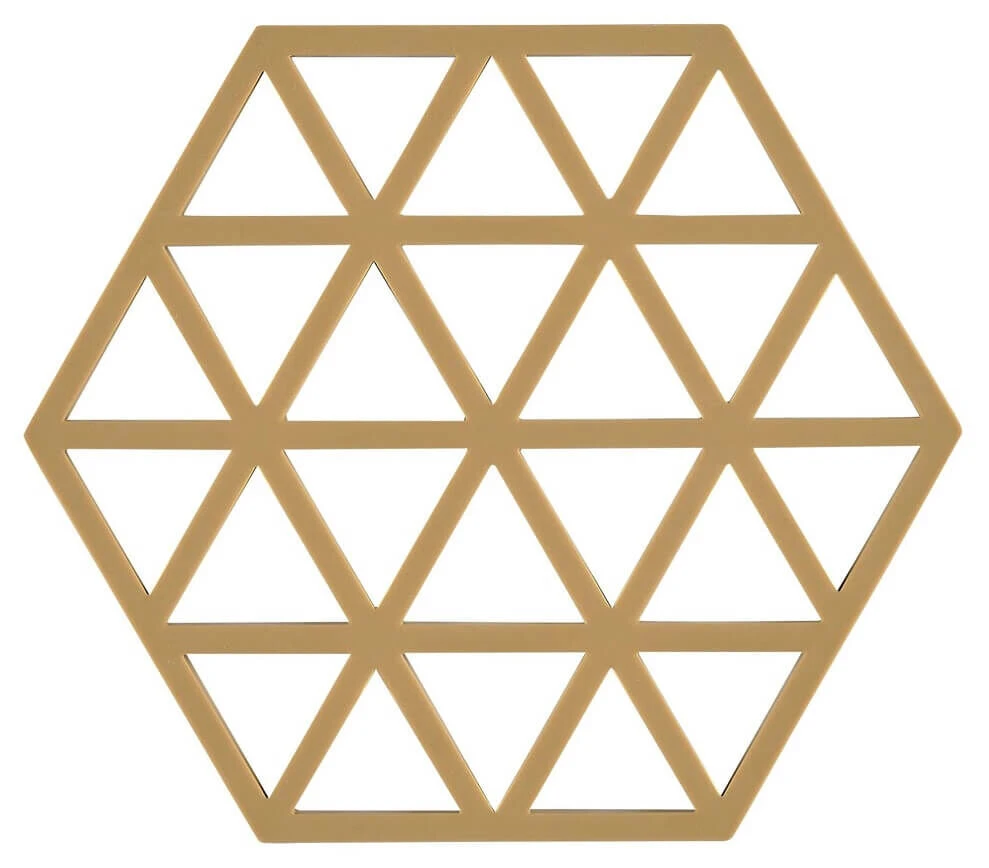 Driehoekige onderzetters van siliconen zijn zo grafisch decoratief dat ze uitnodigen om een hele set over de lengte van de tafel uit te spreiden zonder er daadwerkelijk iets op te plaatsen. Ze zijn hittebestendig tot 250 °C en kunnen in de vaatwasser worden gewassen.